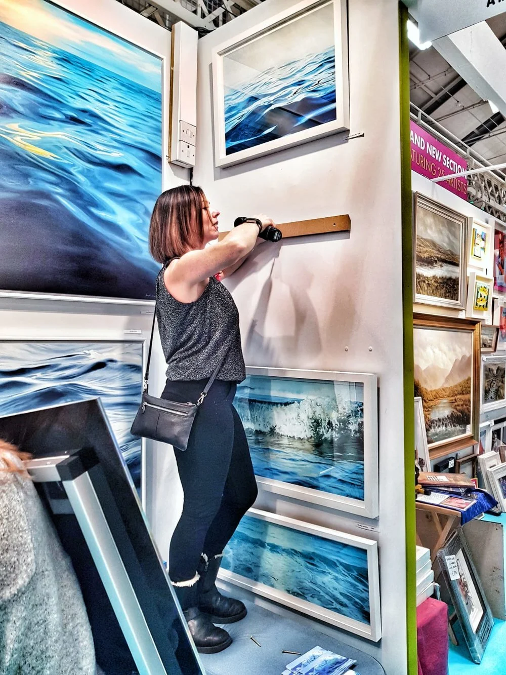 A few years ago at the age of 43, I decided to turn everything on its head and create my own collection of work. It took the guts of a year to paint my first collection of ocean-inspired work. It took all my willpower to say no to paid work so as I could spend time in my studio. Any self-employed person will tell you how difficult it is to say no to paid work. It’s also incredibly empowering. Once I changed the direction I found new opportunities open up. I had my first solo exhibition in 2018 and everything sold, most of it before the exhibition. Since then I have concentrated mainly on my own paintings. I do still take on murals but I’m very selective in what I do. Murals are great for keeping me challenged. The sheer scale forces you out of your comfort zone. Last year I got the opportunity to travel to Switzerland to participate in an all-female group exhibition.